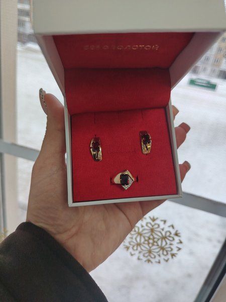 Эффектно смотрится красный цвет, ромбик и золото вместе. Понравился размер и фигура камня. Нет пока. Хорошее отношение к клиенту.