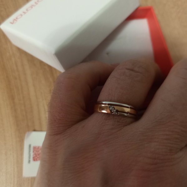 Цена. 👍 Колечко заказывала через приложение, что очень удобно, примерила в магазине , размер подошел,колечко небольшое , изящное👍, с небольшими бриллиантиками.