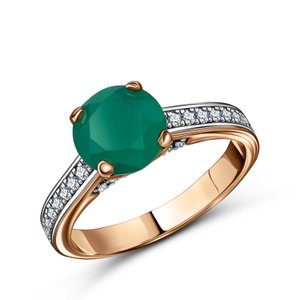 Золотое кольцо с агатом и фианитами