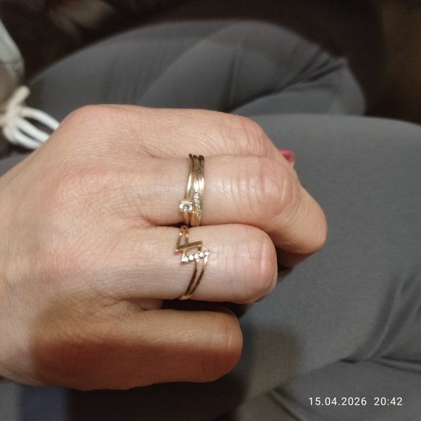 Кольцо супер. Не тонкое. Подбирала под свои кольца, чтоб сочеталось. Смотрится аккуратно и нежно.