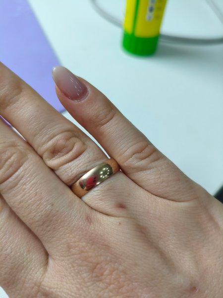 Простое, классическое кольцо. Очень удобное в ношении. Отсутствуют
