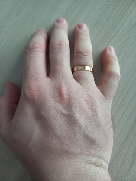 Комментарий:Хорошее обручальное кольцо,нужно брать больше на 0,5 от своего размера тк оно широкое и из-за того может быть маленьким