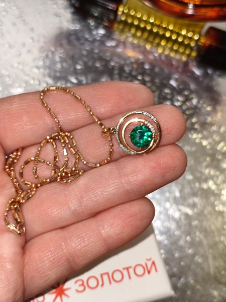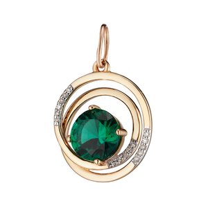 Золотая подвеска с изумрудом выращенным и бриллиантами