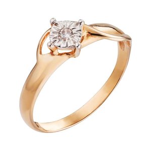 Фото «Золотое кольцо с фианитом и алмазной гранью с родированием»