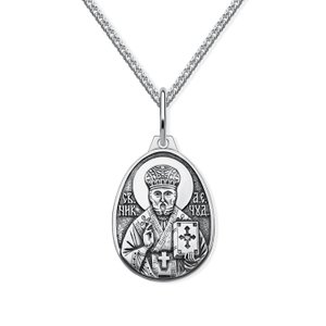 Серебряная подвеска Святой Николай с чернением