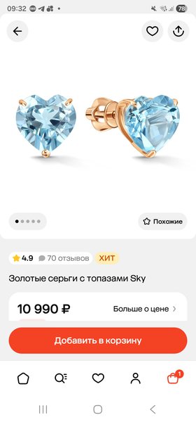 Красивые, блестящие, крупные камушки топазы. Застёжка закручивается, а не силиконовая, из-за которой прошлые серёжки потерялись. Нету Спасибо Вам, родные!)))