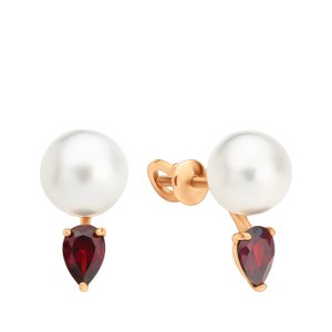 Золотые серьги с жемчугом и гранатом