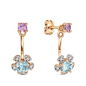 Золотые серьги с топазами, аметистами и фианитами