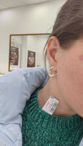 С первого взгляда они мне очень понравились и как смотрится, сочинила озвы фото. Решила купить такие же, но подешевле другой пробы. Пришла мерить в салон, в итоге взяла эти, все таки полностью золото смотрится лучше. Так же спасибо, продавцу Лизе за ее работу )))