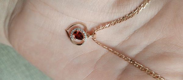 Очень нежное украшение. Современный дизайн, гранат хорошо дополняет композицию. Изделие выглядит дорого ₽ Очень довольна подарком на 14 февраля