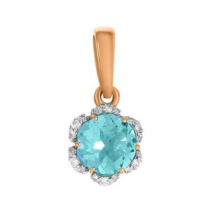 Фото «Золотая подвеска Цветок с топазом Sky и фианитами с родированием»