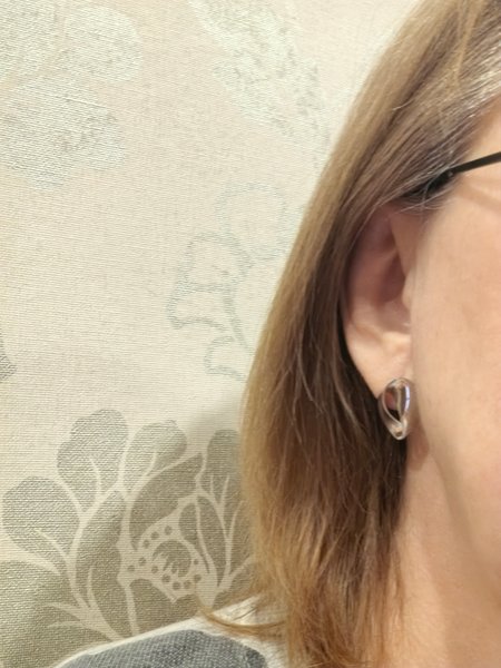 Красивые серьги У меня маленькая мочка и при носке, серьги как бы сползают вперед, а нижняя часть серег смотрит чуть назад, и немного оголяется прокол, это раздражает. Возможно если мочка побольше, такой проблемы не будет