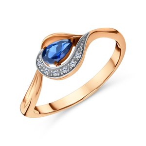 Золотое кольцо с сапфиром выращенным и бриллиантами