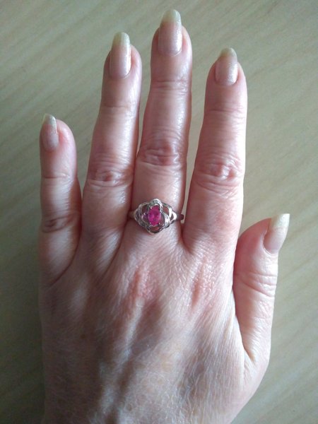 Настоящий рубин, белое золото 750 пробы. Дизайн. Очень нежное кольцо выполнено из белого золота 750 пробы в виде ажурной розы. В центре настоящий рубин овальной формы. На лепестках росинки из бриллиантов.