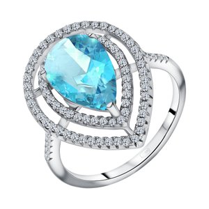 Фото «Серебряное кольцо с ситаллом и фианитами с родированием»