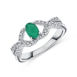 Серебряное кольцо с изумрудом и фианитами