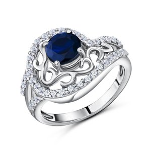 Серебряное кольцо с сапфиром и фианитами