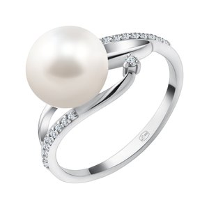 Серебряное кольцо с жемчугом и фианитами