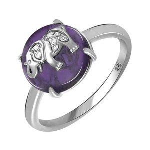 Серебряное кольцо с чароитом и фианитами