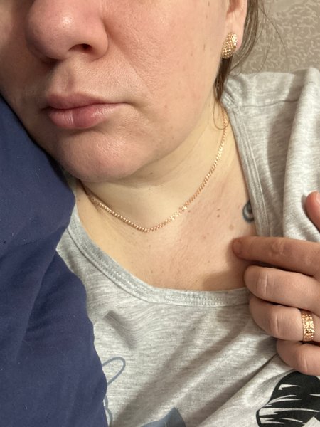 Цепочка красиво смотрится на тонкой шее! Сама по себе немного тяжеленькая, мне очень понравилась! Благодарю!