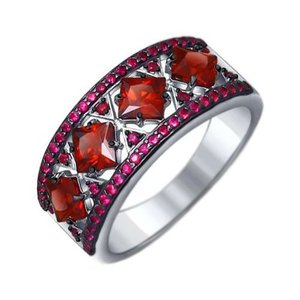 Фото «Серебряное кольцо с гранатом и фианитами»