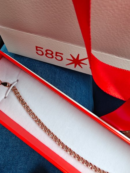Заказывала доставку курьером. После получения взвесила 5,03гр. Пришла в красивой коробочке. На замке торчит край пружинки На вид невзрачная, на руке смотрится добротно, выделяется