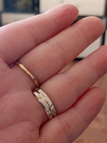 Необычное обручальное кольцо, двойной сплав, полое. Нет Покупкой довольна, красиво и эстетично смотрится 👍🏼