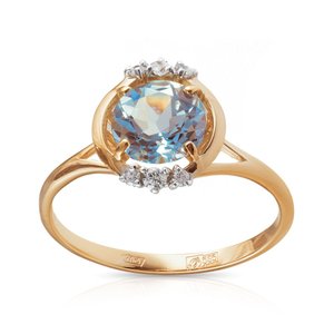 Фото «Золотое кольцо с топазом Sky и фианитами»