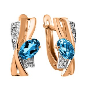 Золотые серьги с топазами London и бриллиантами