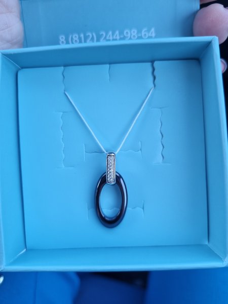 Фото «Серебряная подвеска с керамикой и фианитами с родированием»