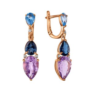Фото «Золотые серьги с аметистами, топазами Swiss и фианитами»