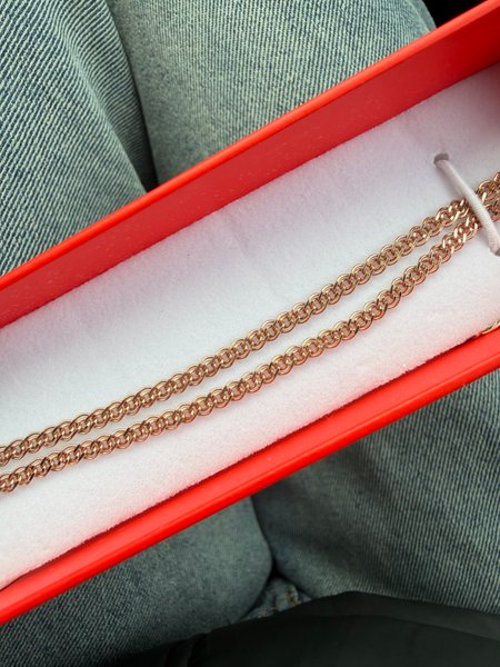 Хорошая полновесный цепь, ношу три года не снимая, не растянулась, прочная. Покупкой довольна. Спасибо большое!!!