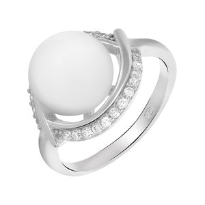 Серебряное кольцо с жемчугом и фианитами