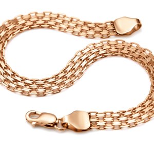 В плетении «Дорожка» звенья соединены в плоскую прямую ленту, которая внешне напоминает мощеную дорожку. Бывают одинарные, двойные, тройные варианты, в последнем – изделие смотрится особенно солидно. Цепочка с таким плетением отличается сдержанностью и лаконичностью, что делает её идеальным выбором для мужчин.