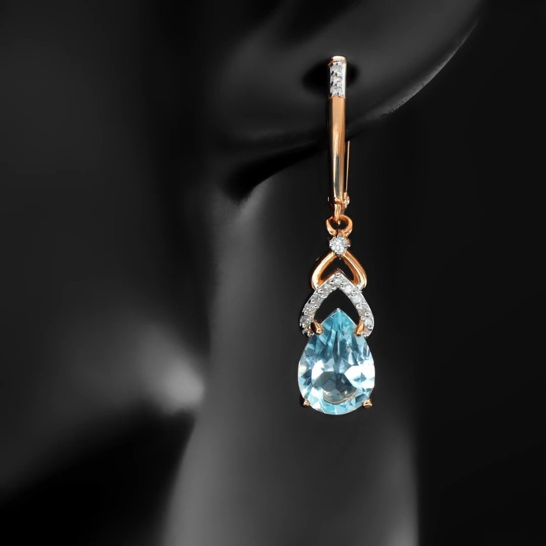Золотые серьги с топазами Sky и бриллиантами