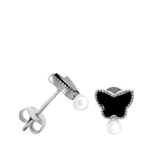 Серьги-пусеты Бабочка из серебра с жемчугом и агатами