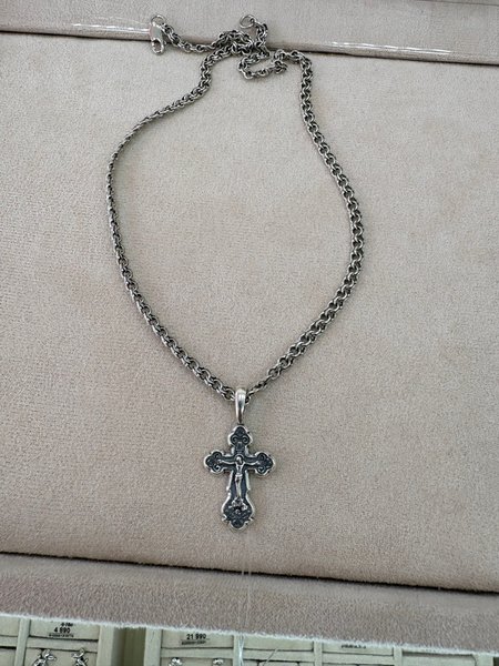 Очень красивый крест, увесистый, не маленький, брала для папы, подбирала под имеющуюся цепочку.