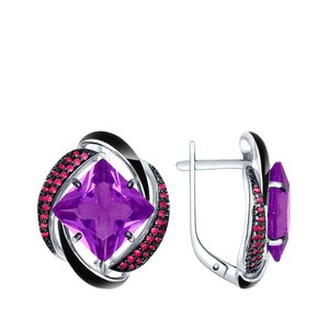 Фото «Серебряные серьги с ситаллами и эмалью с фианитами»