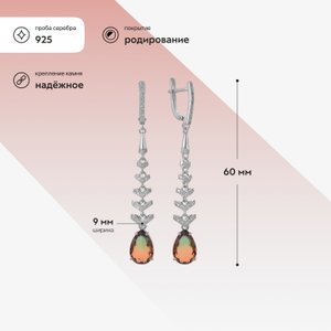 Серьги из серебра с турмалинами и фианитами