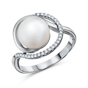 Серебряное кольцо с жемчугом и фианитами