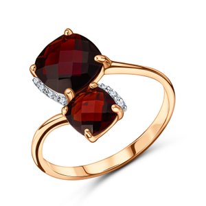 Золотое кольцо с гранатом и фианитами