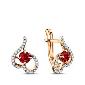 Золотые серьги с гранатом и фианитами