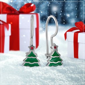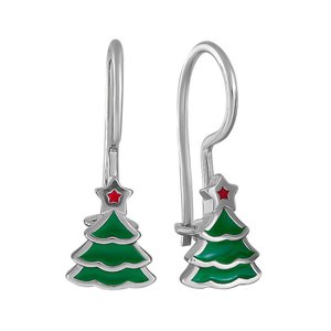 Серебряные серьги Елка с эмалью