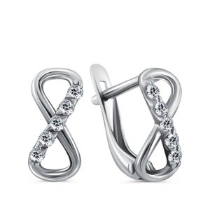 Серебряные серьги Бесконечность с фианитами и родированием