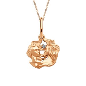 Золотая подвеска с фианитом «Знак зодиака Близнецы»