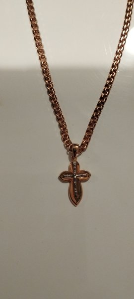 Крестик не большой. Ушко хорошее, толстое, зашел на толстую цепь. Кольцо у крестика тоже не тонкое. Сам крестик не тоненький. Вставка и сам крестик не цепляется.