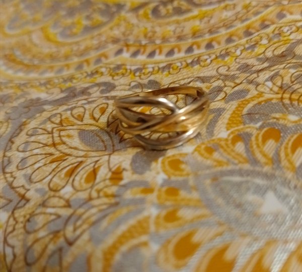 Красивое кольцо с переплетением белого и желтого золота, смотрится очень достойно.