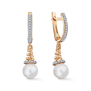 Золотые серьги с жемчугом и фианитами