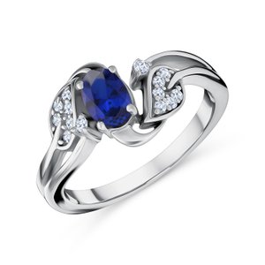 Фото «Серебряное кольцо с сапфиром и фианитами»