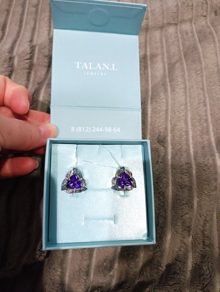 Фото «Серебряные серьги с аметистами и фианитами»